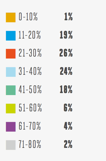 The 100+ respondents were asked how much revenue they allocate to mobile as percentage of total digital spend.
