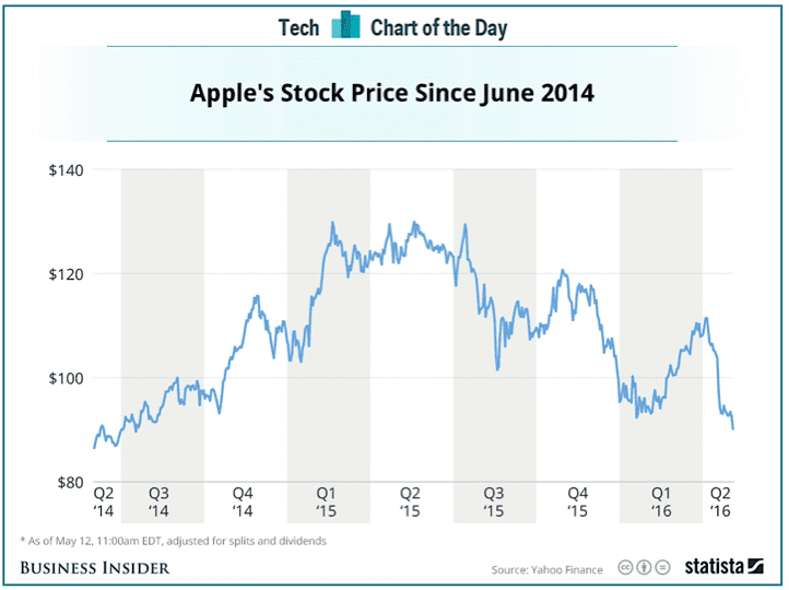 Apple stock price 2014 to 2016