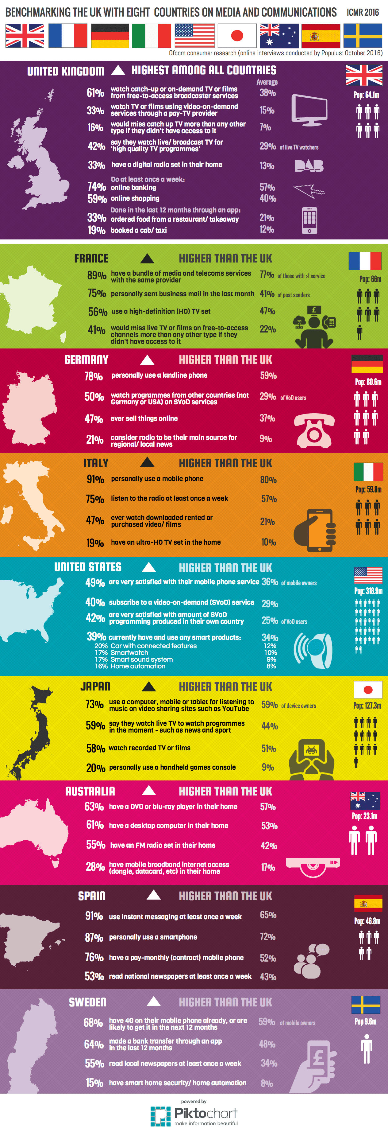 - Sample:1,000 respondents in each of the nine countries featured in the average: the UK, France, Germany, Italy, the US, Japan, Australia, Spain and Sweden. Plus the report compares to other nations: 1. France (FRA) 2. Germany (GER) 3. Italy (ITA) 4. The United States of America (USA) 5. Japan (JAP) 6. Australia (AUS) 7. Spain (ESP) 8. Sweden (SWE) 9. The Netherlands (NED) 10. Poland (POL) 11. Singapore (SGP) 12. South Korea (KOR) 13. Brazil (BRA) 14. Russia (RUS) 15. India (IND) 16. China (CHN) 17. Nigeria (NGA)