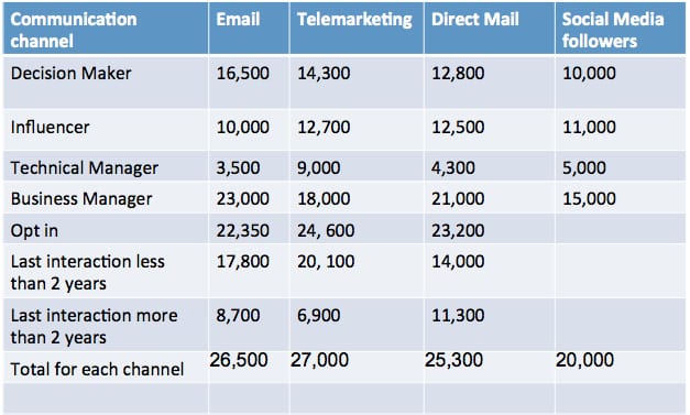 Based on the number of contacts and opt in for your audience, you can determine whether you have the data to proceed or sufficient social media "followers" and plan the campaign using SMART objectives which set the basis for results and metrics. If at this stage, you realise that you do not have sufficient data you may consider acquiring contacts.