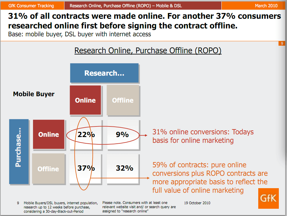 ROPO is a term coined to describe research published by Google in this study meaning “Research Online Purchase Offline” (although it Research Offline-Purchase Online is another behaviour which can also be important.