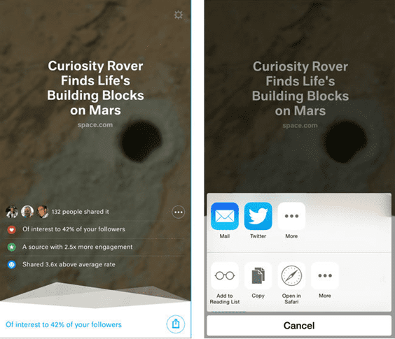 Make it easy for your team to share curated content by providing it for them. Tools like Feedly and Juice.li make it easy to find fresh, compelling, niche-relevant content worthy of sharing out. Feedly is a newsreader tool that allows you to collect content from various feeds, making it easy to discover content related to your niche from one place. The iOS-only Juice.li is a similar tool, but it uses algorithms to find 10 article share suggestions per day, based on your Twitter following’s interests and share rates of a given topic’s coverage on a given publication.