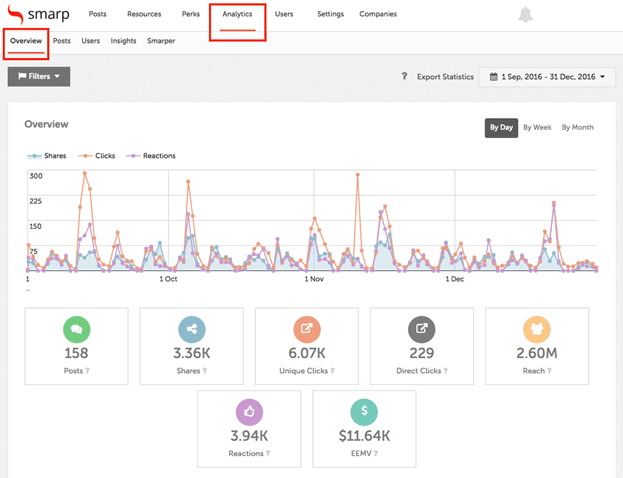 Only then are you able to optimize your curation flow and reward programs to drive the most business. With a comprehensive advocacy tool like Smarp, you can keep track of employee-referred conversions and shares.