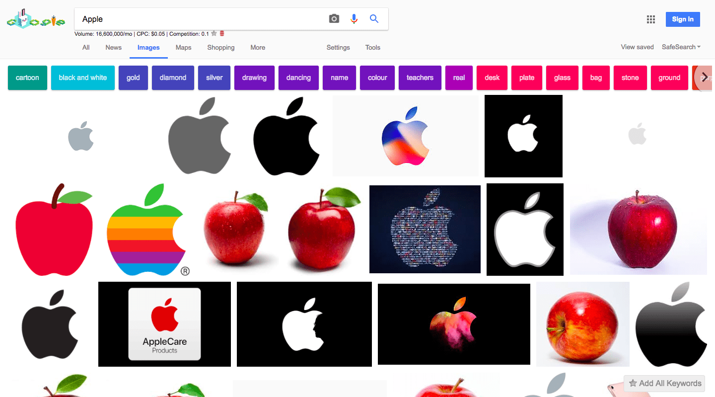 Apple dominate Google image search for the word 'Apple'. Their logo and online identity has surpassed the image search for a physical fruit apple. This brand identity online keeps users knowing who they are and what they look like.