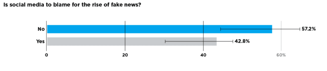 Despite 81% of consumers using social media at least once a week to discover news, there is uncertainty about the authority of these news sites. Pair this with the 57% who believe that social media is to blame for the rise of fake news and we begin to get a deeper understanding of why internet users seem to disagree about what can be trusted online.