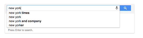 Google’s Autocomplete or ‘search suggest’ can be seen in the search predictions one sees when typing a query into Google: