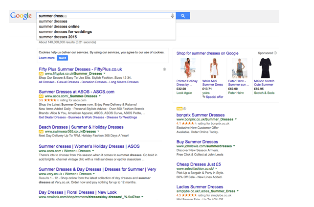 When searching for [summer dress] in Google, I get the following autocomplete suggestions: