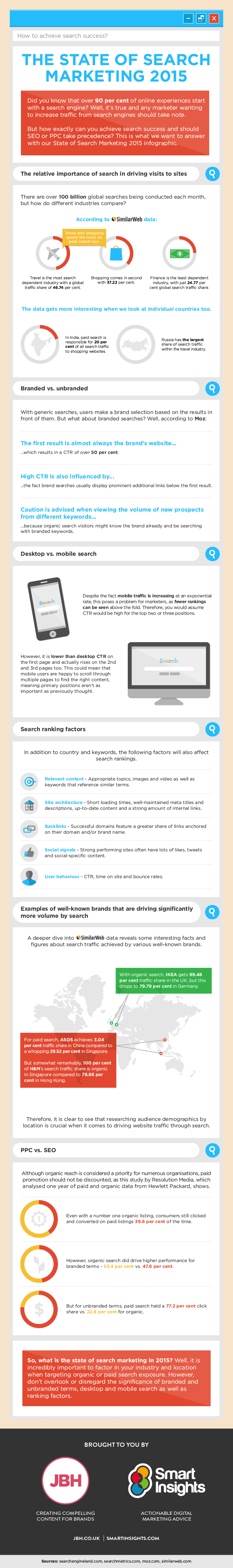 The importance of search marketing today is shown by our new infographic created by JBH Marketing. It shows the importance of search drawing on the latest data from SimilarWeb on the level of consumer demand through searching and including practical advice and analysis from some of the top places to learn about search like Moz, Search Engine Land and Searchmetrics.