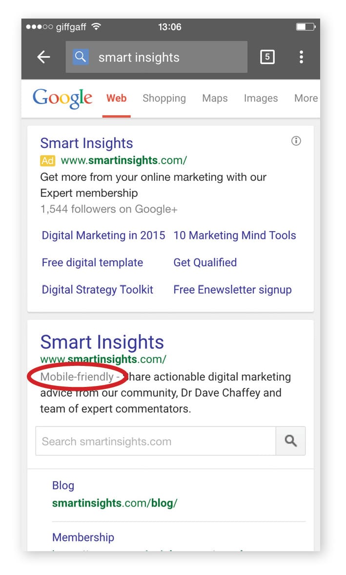 - 2. Mobile-friendly snippet - Google start to signpost mobile-friendly websites in mobile lists next to the meta description. If your site is missing these 'Mobile-Friendly' labels you are likely to have a problem come the 21st of April.