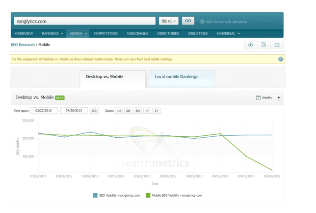 Other losers included sites such as non-mobile-friendly Songlyrics:Songlyrics keyword review after Google's mobile algorithm update