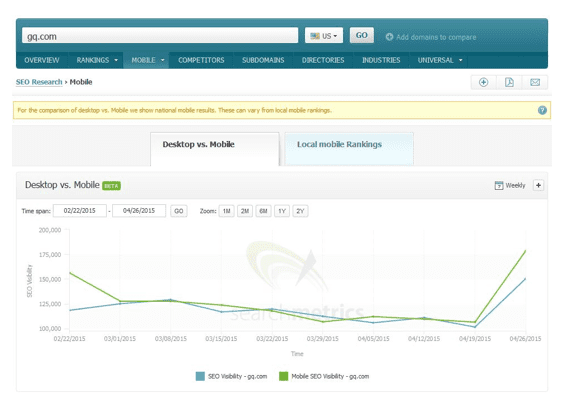 Mobile keyword Search from Searchmetrics