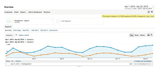 You will probably know this already! But if you're asked the question and need a quantitative answer, Dave Chaffey has created a handy step-by-step guide for checking the impact of ‘Mobilegeddon’.
