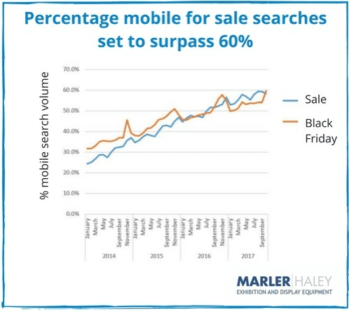 The findings, published by Marler Haley suggest that UK mobile search trends for consumer-related searches ‘sale’ and ‘Black Friday’ will surpass 60% by the end of the year.