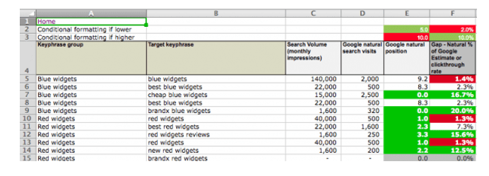 The keyword-level data offered by Google via Webmaster Tools is far from perfect and there are limitations to be aware of, but that said, this method does at least give you an indication of the type of visits different keywords are delivering which can then be imported into a gap analysis template.