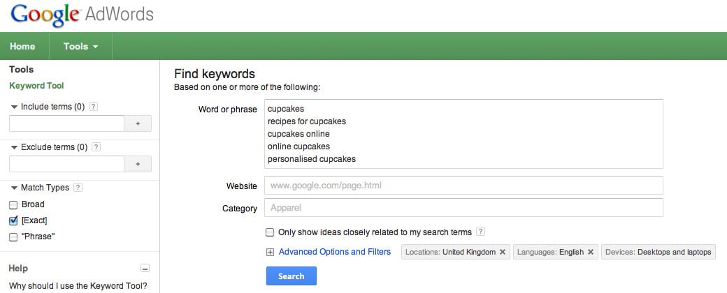 Assuming you have already conducted a keyword gap analysis to identify the terms most relevant to your site, the next step is to estimate the potential search volume for the top search terms you want to optimise for using Google’s Keyword Tool.