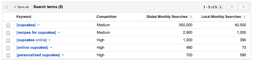 The output from this activity will give you an indication as to the number of searches specifically for those key phrases per month. Remember that ‘Local Monthly Searches’ refers to the UK and it is this figure you should consider.