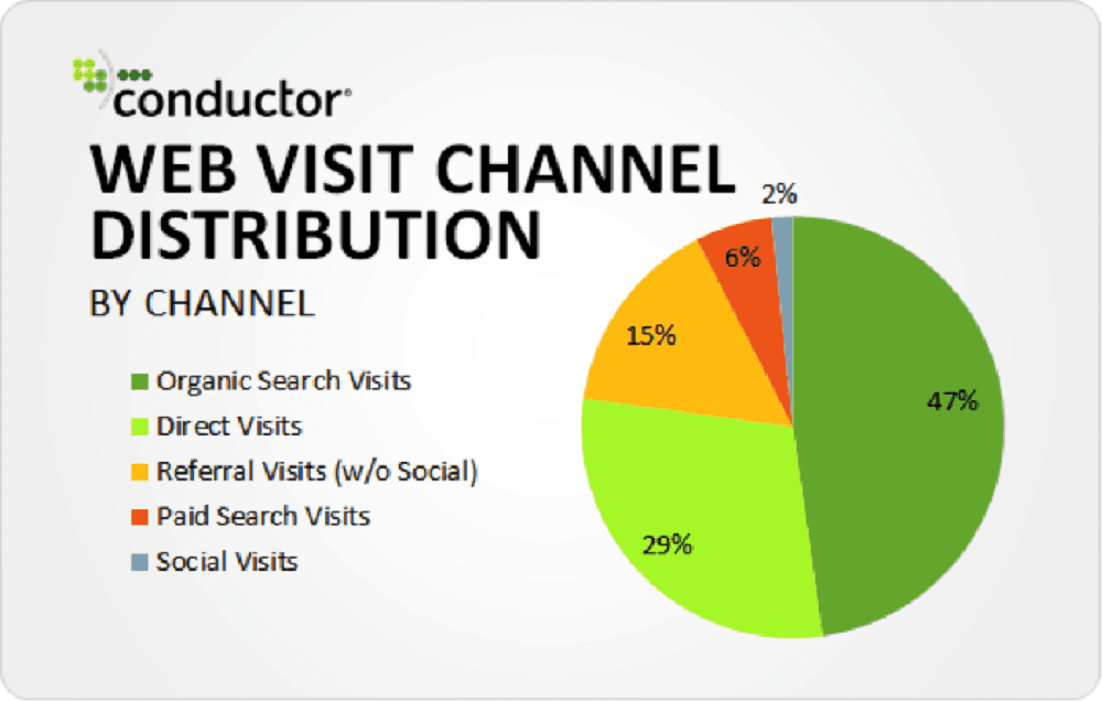 The original study showed that 47% of visits were organic search; the updated study suggests that organic search traffic might be responsible for closer to 64% of website traffic.'