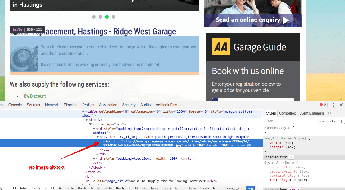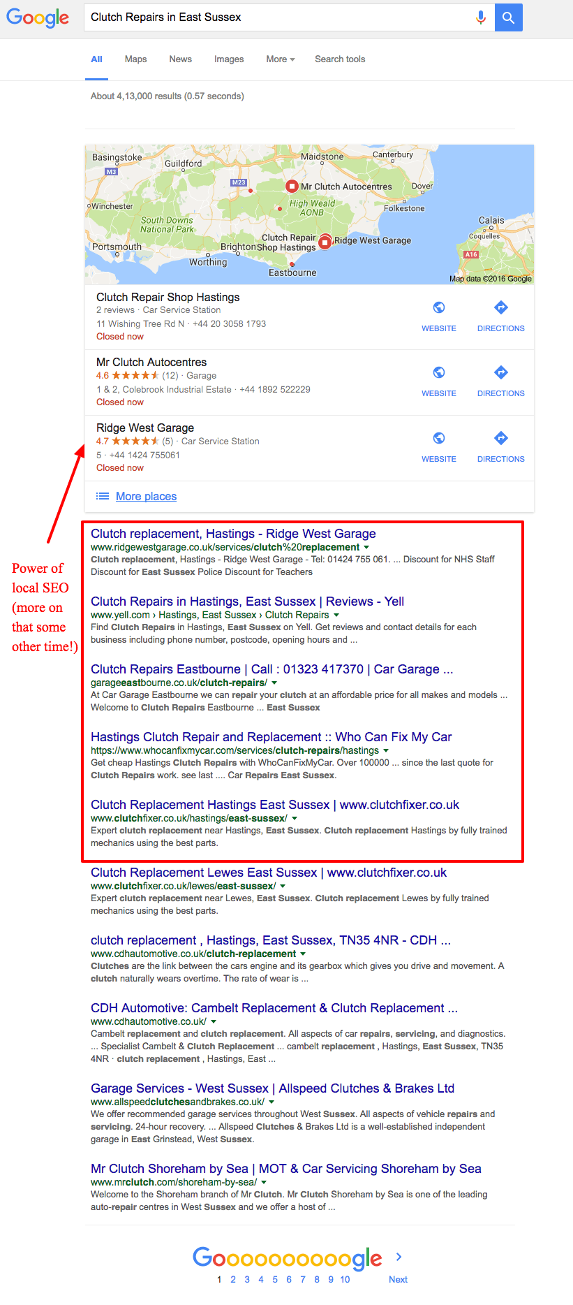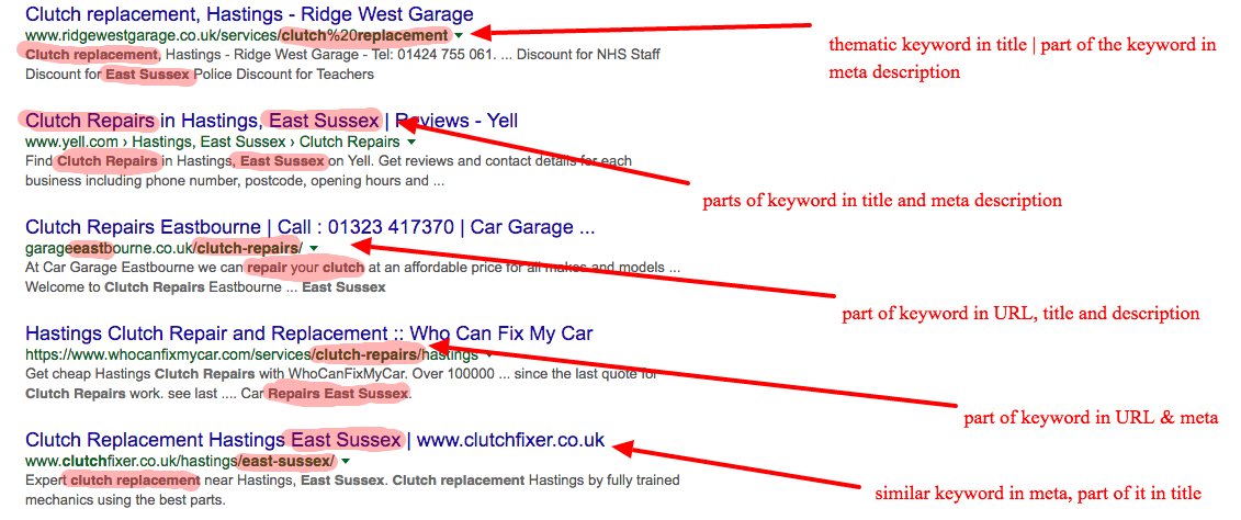 Let’s take a look at the first result in our live example: search results for “Clutch Repair in East Sussex”: