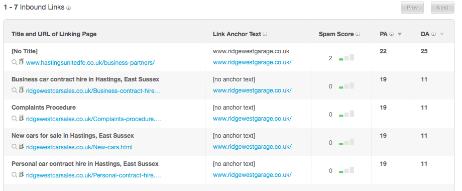 For this specific example, there were no inbound links (backlinks). I hence looked for their main domain to illustrate how the results would look: