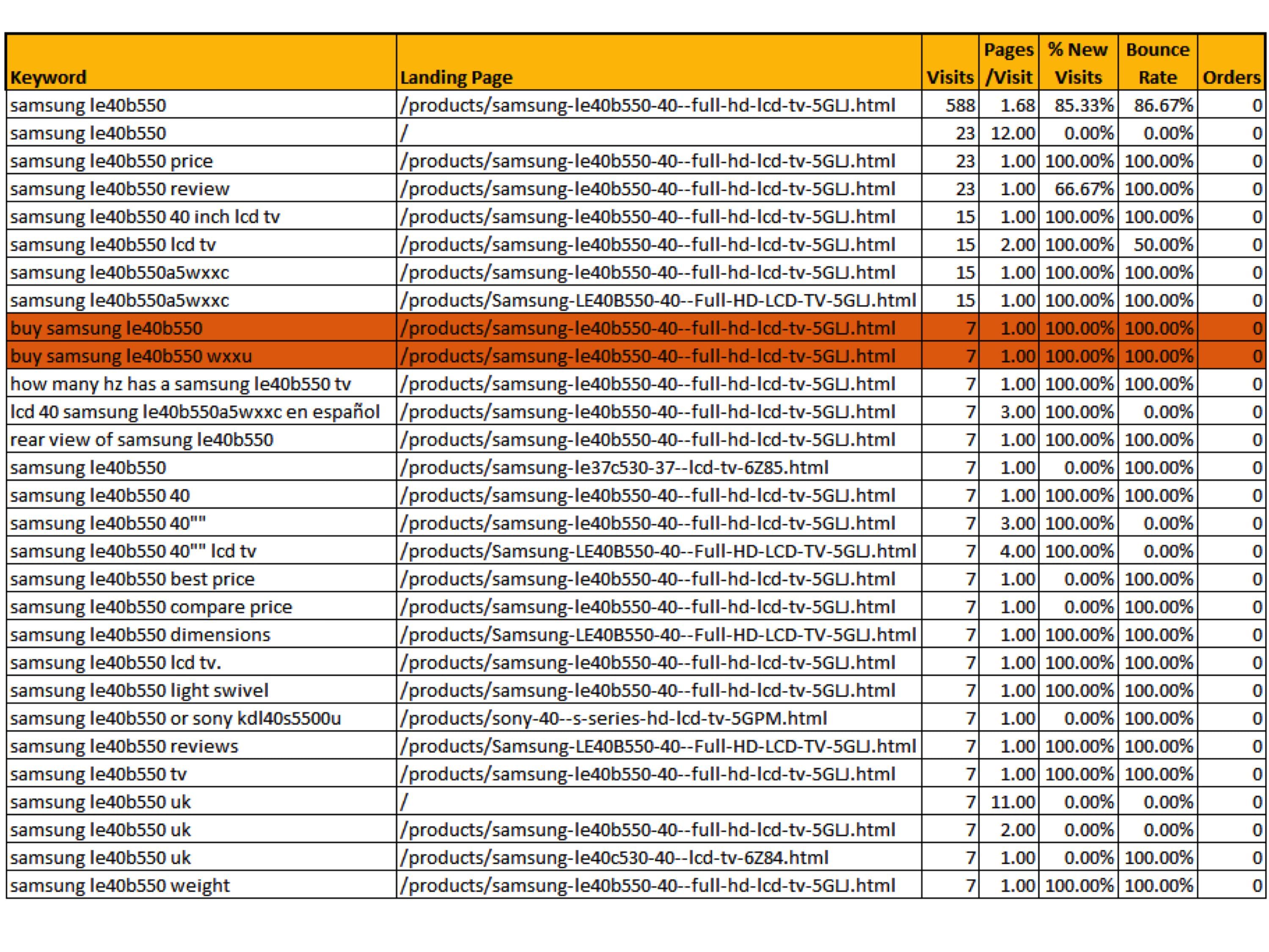 Why? You have to consider consumer intent before deciding that a keyword is irrelevant. For example, it’s not unusual for local search keywords to drive traffic with poor engagement. Think about why: a search for “london jewellers” could indicate the need to find a local jeweller in London. It doesn’t necessarily mean that the searcher wants to buy from a jeweller online; that is too much of an assumption.