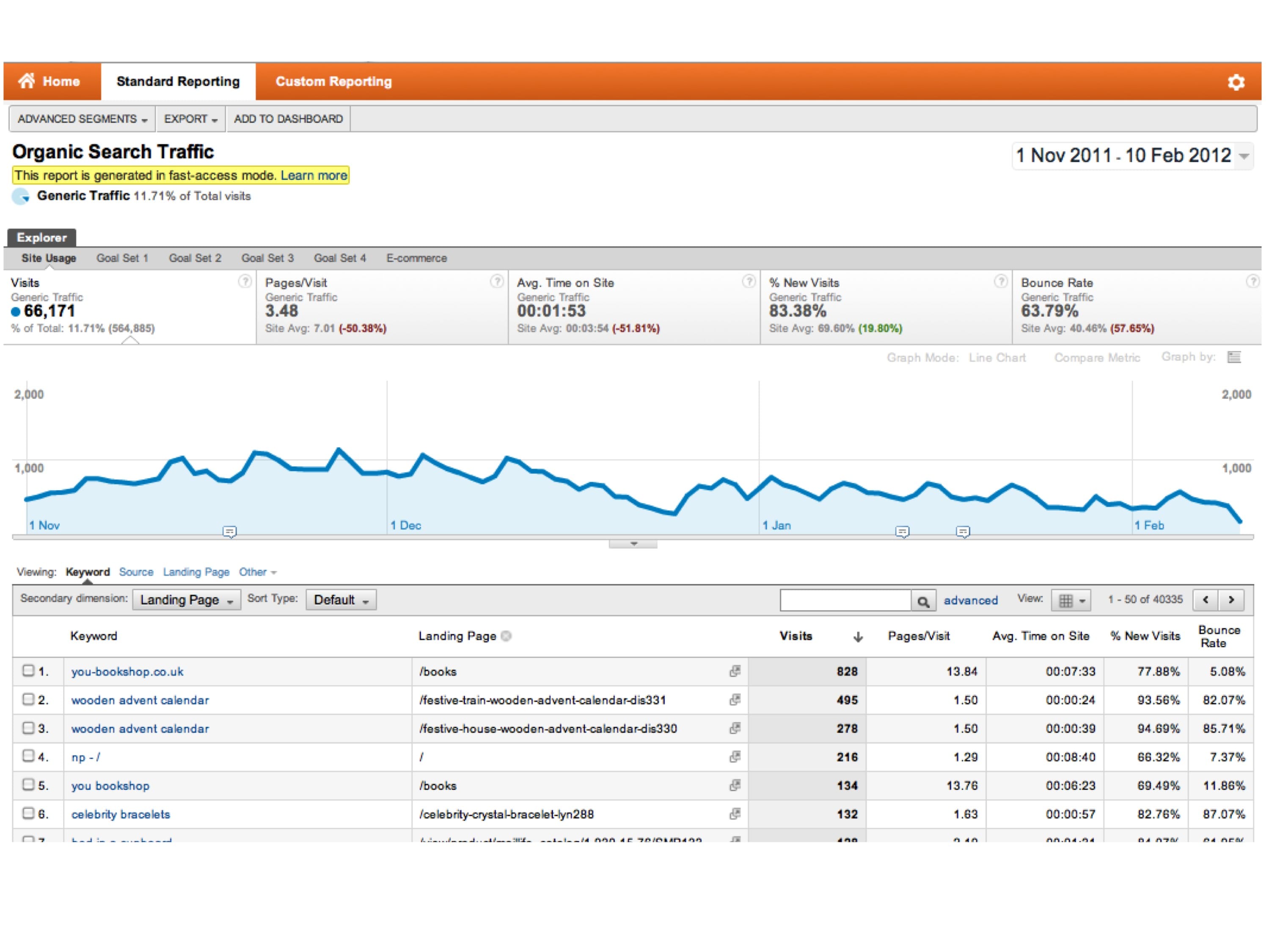 I worked with an online fashion retailer to improve the ROI from natural search. Traffic was good (86% YOY increase and higher % of total sales) but the conversion was poor. The web team didn’t understand why – they had done the keyword research, got people to the site and then a big blackhole appeared.