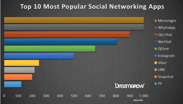 It is worth noting that the four most popular messaging apps - Messenger, WhatsApp, QQ Chat and WeChat - have a wider community than the top four main social networks.