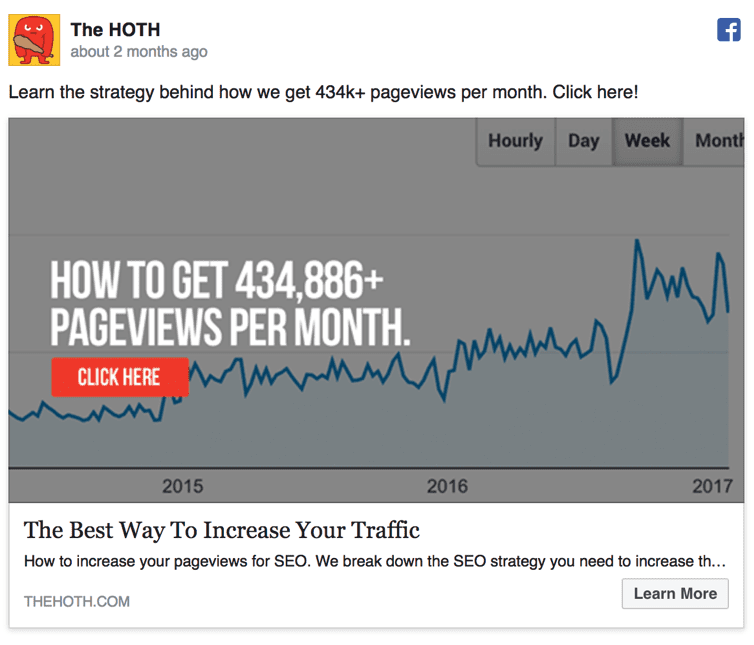 And if you can not avoid using a white or lighter background, just throw a dark colored gradient over the image. It is one of the oldest tricks in the Facebook Ad or really any social network game and the team at Hoth used it perfectly.