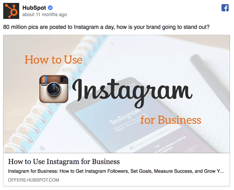 Using icons in this way really helps your visual look balanced and also sets the tone for what the ad is about. And finally we have one from the team at Hubspot, where they use just a simple Instagram icon to add quick context to the post: