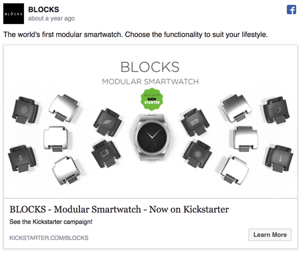 Honestly, you are not sure where the ad text ends and the visual begins if you take a quick look. So I would recommend taking their hiccup and using it for your gain by never using a white background in a Facebook Ad visual. The same can be said about this ad from Blocks about using white backgrounds: