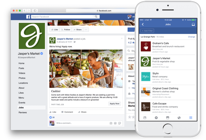 As of February 15th businesses pages on Facebook in the US and Canada will be able to create a new post type; 'job posts', and potential employees will be able to see these postings in a dedicated 'jobs tab', as well as the usual newsfeed.