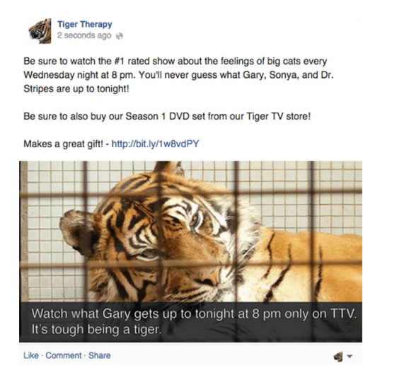 Here is an example of what Facebook call a promotional post: