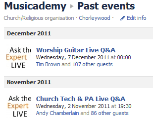 Here are two examples of the Facebook webinar; one for my own business, Musicademy, and the other for Vets Now, which I described in a previous post showing the awesome ways they encourage interaction on their pages.