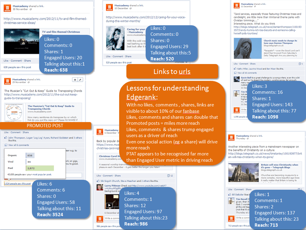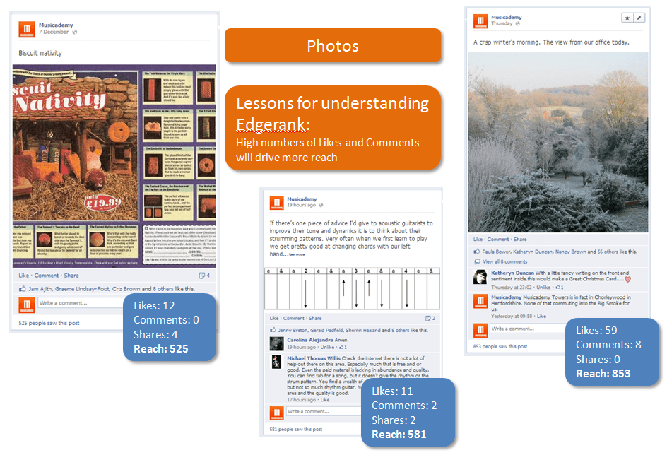Along with most commentators on Facebook, I've written extensively about the new Edgerank algorithm in recent weeks. It's clear that many brands have experienced a significant drop in organic reach (although to be fair I'm not the only one who has reported a significant increase in reach since the back-end of November as Facebook appear to have tweaked the algorithm again - see below).