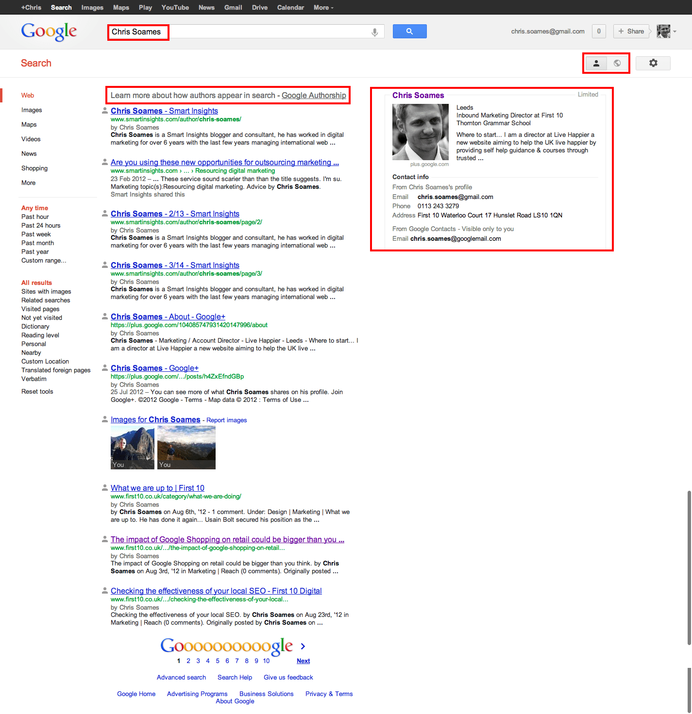 Once you have followed the instructions as outlined below you will be able to view your author page in Google.com which will look similar to mine below.