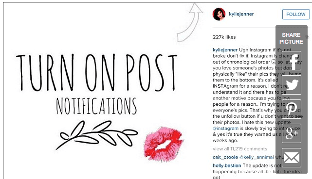 It is also one which is going to have a marked impact on brands, users and consumer behaviour. See this Gifographic for the statistics on Instagram growth. Like it's parent, Facebook, this new structure will now see images slotted into streams based on user actions, not in reverse chronological order. For the A-List it probably means very little indeed. For the rest, well, there is a now almost dreaded ‘turn the notifications on’ post waiting for your eyes to land on it.
