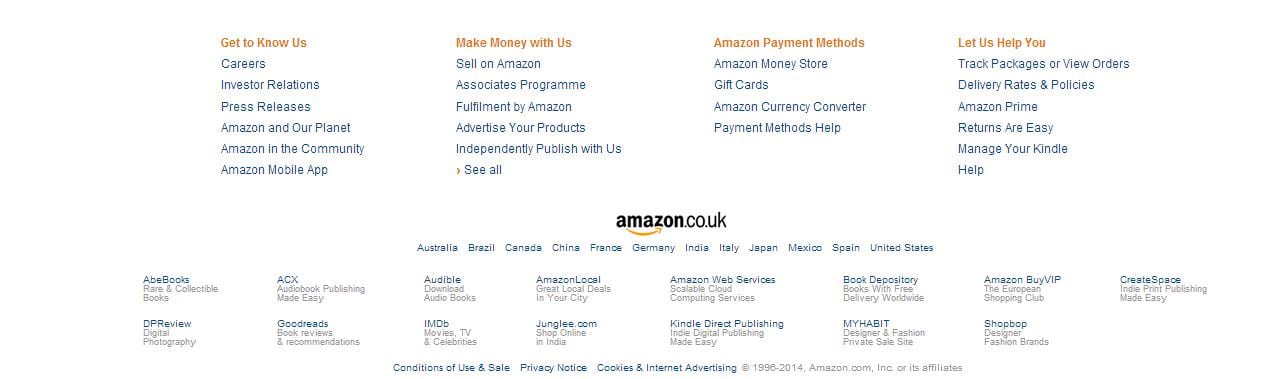 With this in mind, it is no surprise to me that the links to Amazon’s social media profiles are almost invisible on their website – they don’t simply want people leaving the purchase journey they are on. This is not to say they don’t have profiles – on the contrary, they have a huge social following.  But they know if people need to find them, they will.  They just don’t want to be sending customers away from their site.