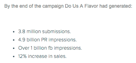 The figure below nicely recaps some of the successes of the first Do Us a Flavor campaign: