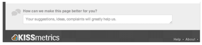 See how Kissmetrics implements a handy feedback bar for users to report complaints and give suggestions.
