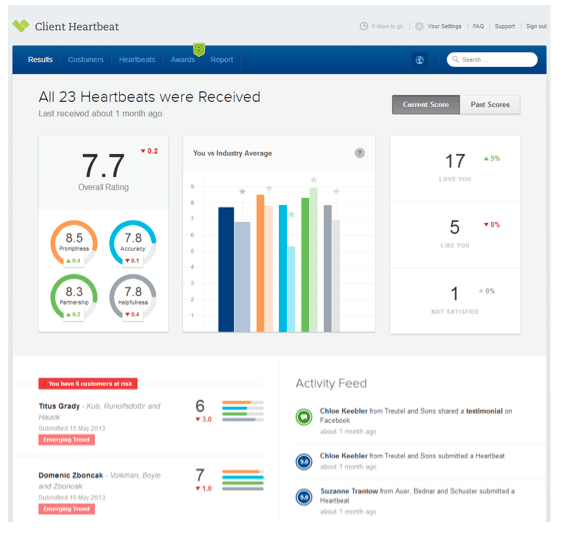 15. Keep an eye on competition – If your competitors are performing better than you in many aspects, there’s a danger of your customers leaving. It’s important to keep a close eye on them so that you know how you're stacking up against them. I recommend using tools like Client Heartbeat to see how your competitors are performing in terms of customer satisfaction.
