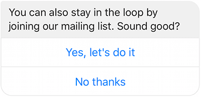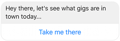 The conversational nature of chatbots makes getting your tone of voice right critical. Tone of voice will vary according to the nature of your business. For example, a chatbot promoting the local music scene may be fairly relaxed and include the greeting: