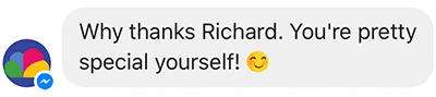 Chatbots can sometimes expect to receive some unexpected emotional responses, so it is advisable to have some content blocks ready for statements such as ‘I like you’.