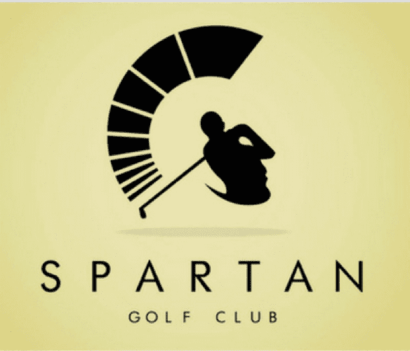 The profile of the Spartan helmet and a golfer merge in one image: